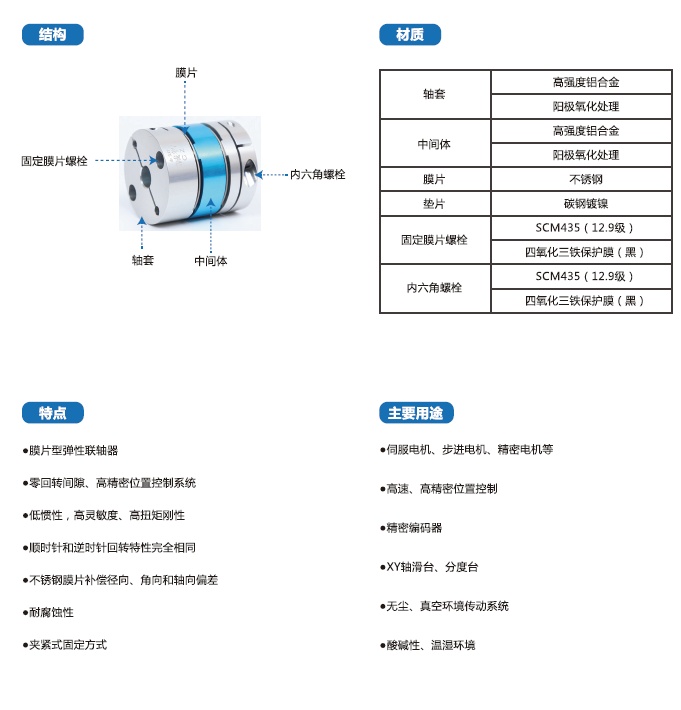 SFP-C系列聯(lián)軸器采用高強(qiáng)度鋁合金材料,經(jīng)過(guò)陽(yáng)極氧化處理,廣泛用于伺服電機(jī)、步進(jìn)電機(jī)、精密電機(jī)等。
