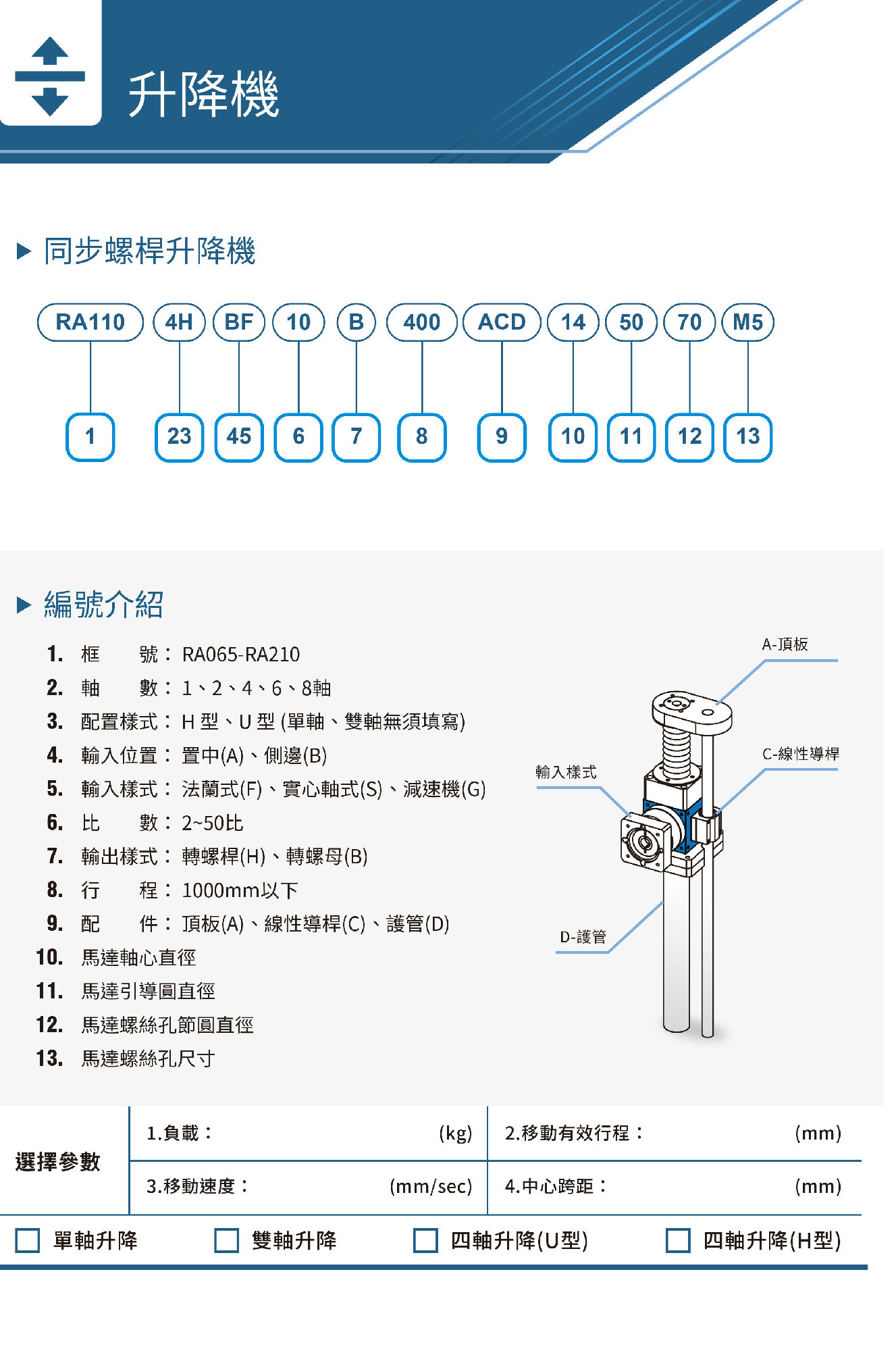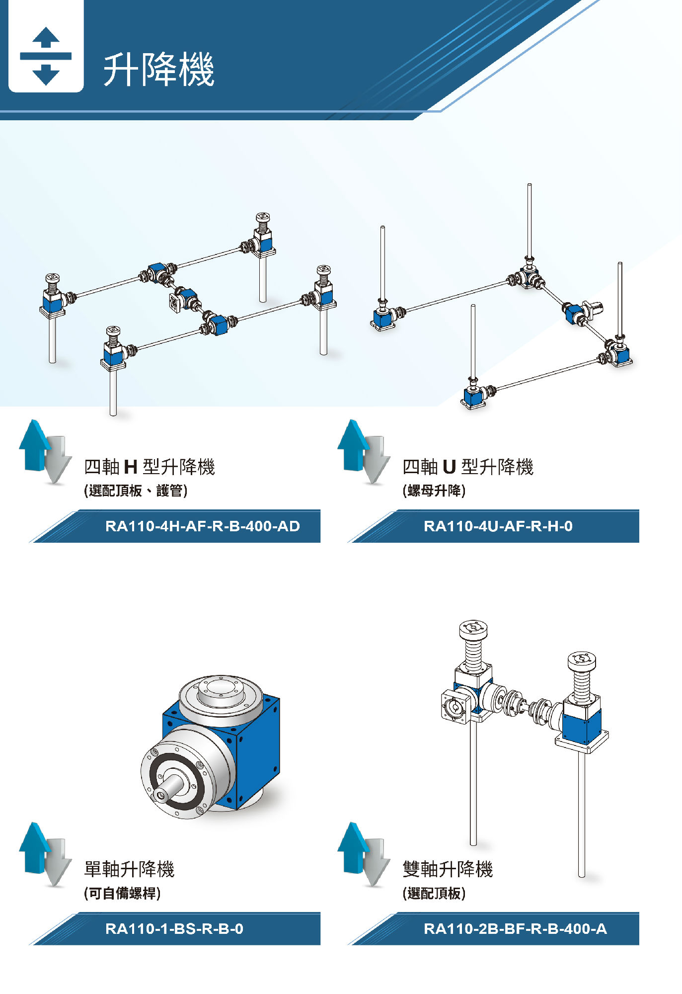 HAF系列四軸升降機是H型結構,選配頂板、護管。適用于晶片、面板、倉儲、回流線等有垂直升降需求的產業,可替換傳統的氣壓罐與蝸桿設備,同時達到多段與精準控制。