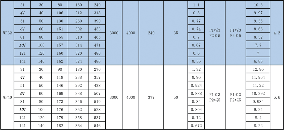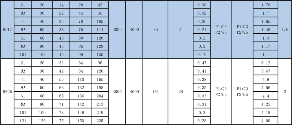 行星圓齒式減速機性能表: