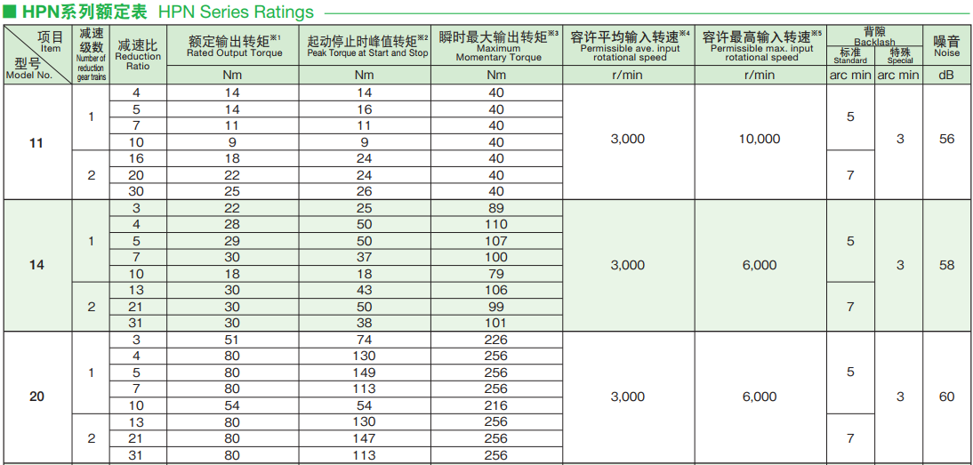 HPN系列高精度行星齒輪減速機(jī),可簡(jiǎn)單的安裝到各公司的伺服電機(jī)上。 諧波發(fā)生器:橢圓形凸輪的外圈上嵌入薄型的滾珠軸承,整體呈一橢圓形狀的零件。軸承的內(nèi)圈固定于凸輪之上,外圈則介由滾珠彈性變形。一般安裝在輸入軸上。 柔輪:具有薄壁杯型的金屬?gòu)椥泽w的零件。杯的開(kāi)口部外圈刻有齒形。柔輪的底部稱為膜,通常安裝到輸出軸上。 剛輪:剛性環(huán)狀的零件。內(nèi)側(cè)上刻有與柔輪同樣大小的齒形,且比柔輪多2個(gè)齒數(shù)。一般固定在外殼上。
